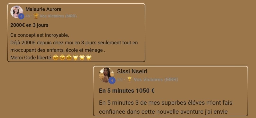 Et sur la communauté Code Liberté, je réponds personnellement à toutes vos questions, de manière approfondie, pour que vous ne restiez jamais bloqué et que vous progressiez rapidement.