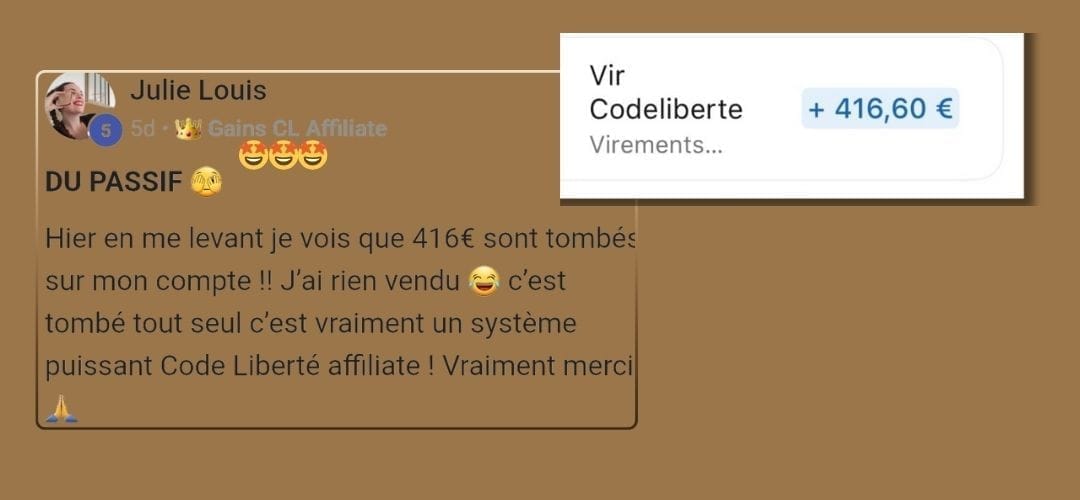 Code Liberté Affiliate, c’est la suite logique du programme Code Liberté : la version “next level” pour passerd’un simple revenu actif à un vrai système de revenus multiples.